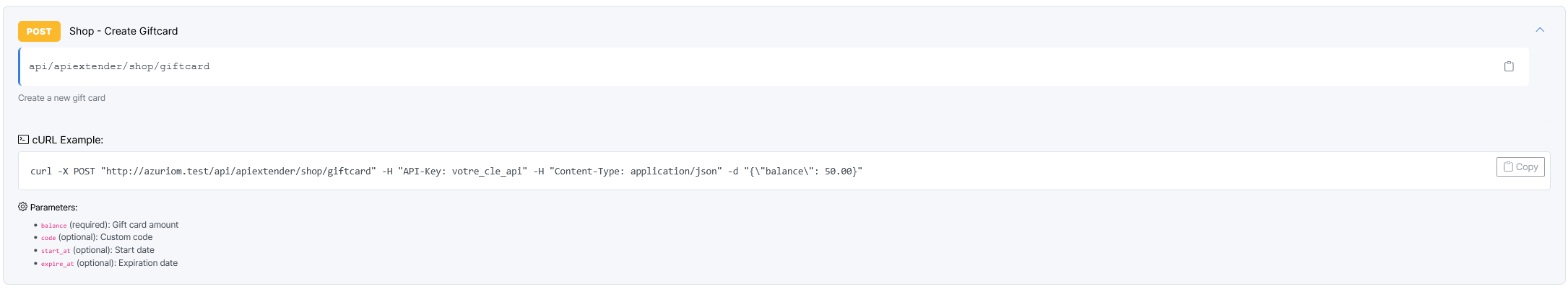 v1.0.6 - Add API endpoint to generate gift cards from the shop plugin Azuriom v1.0